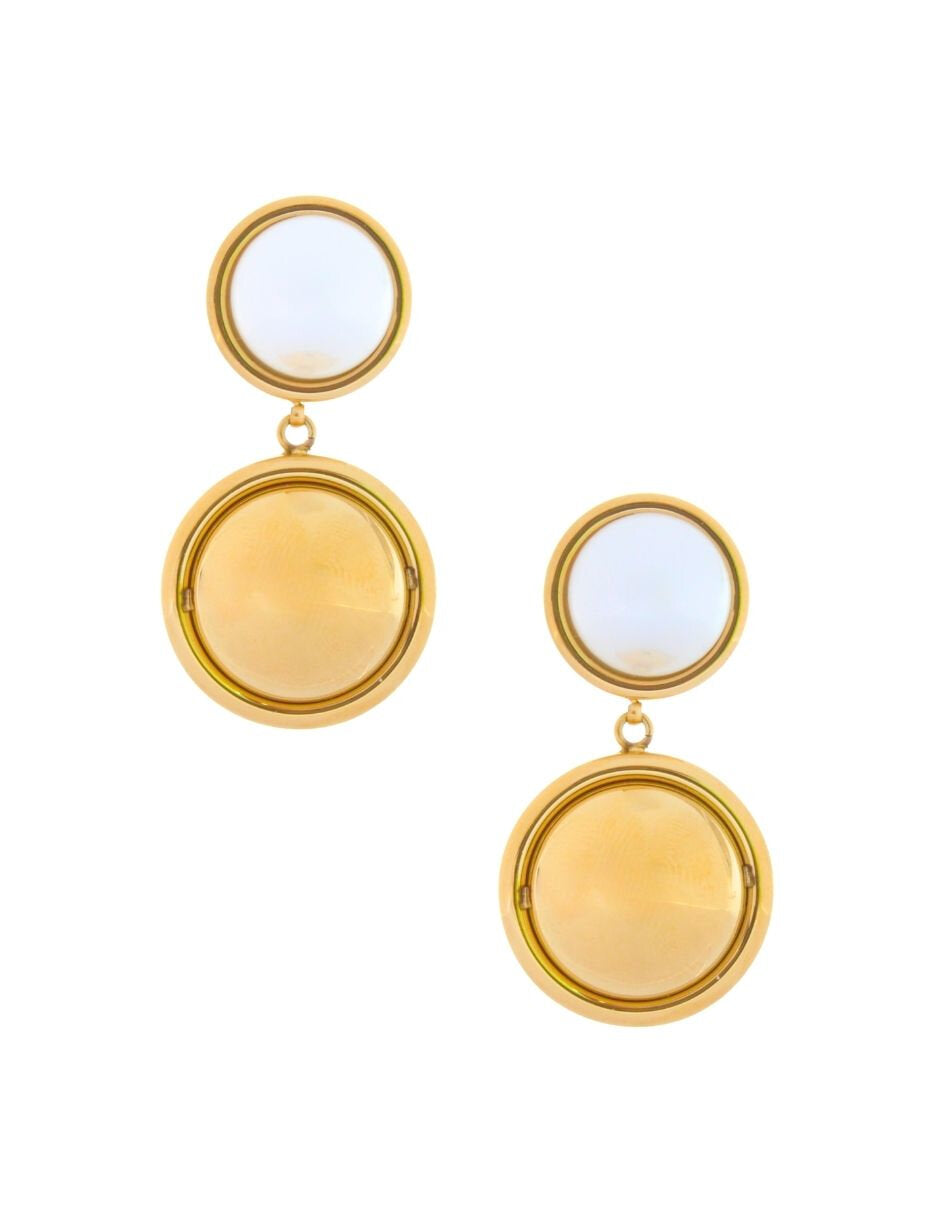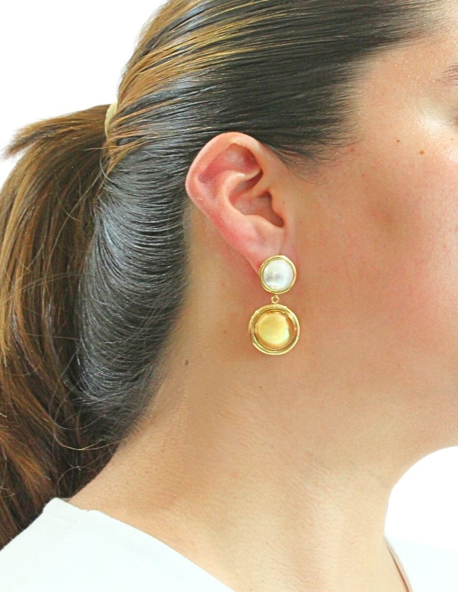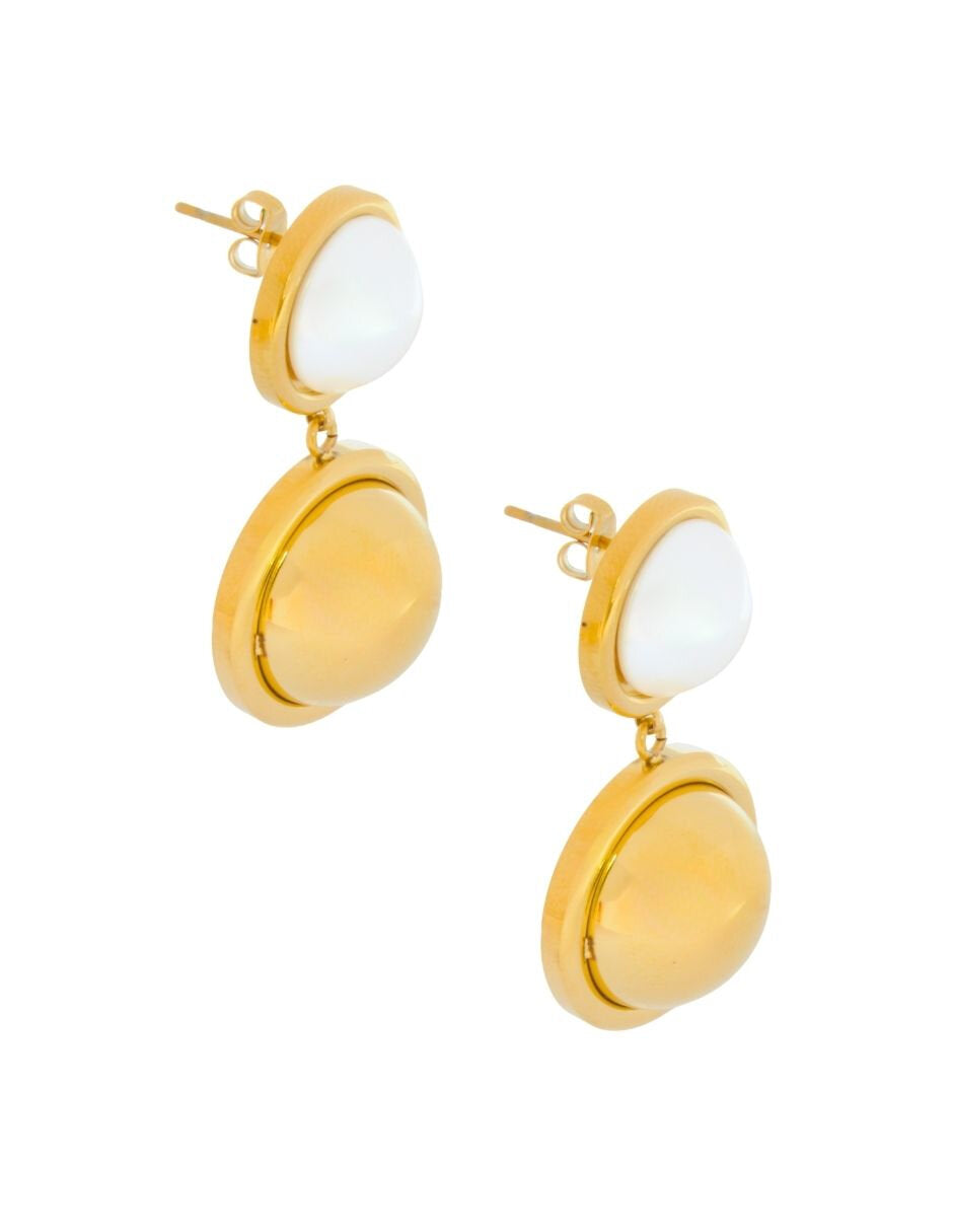 Arete Colgante 2 Redondos Dorado y Perla Sint