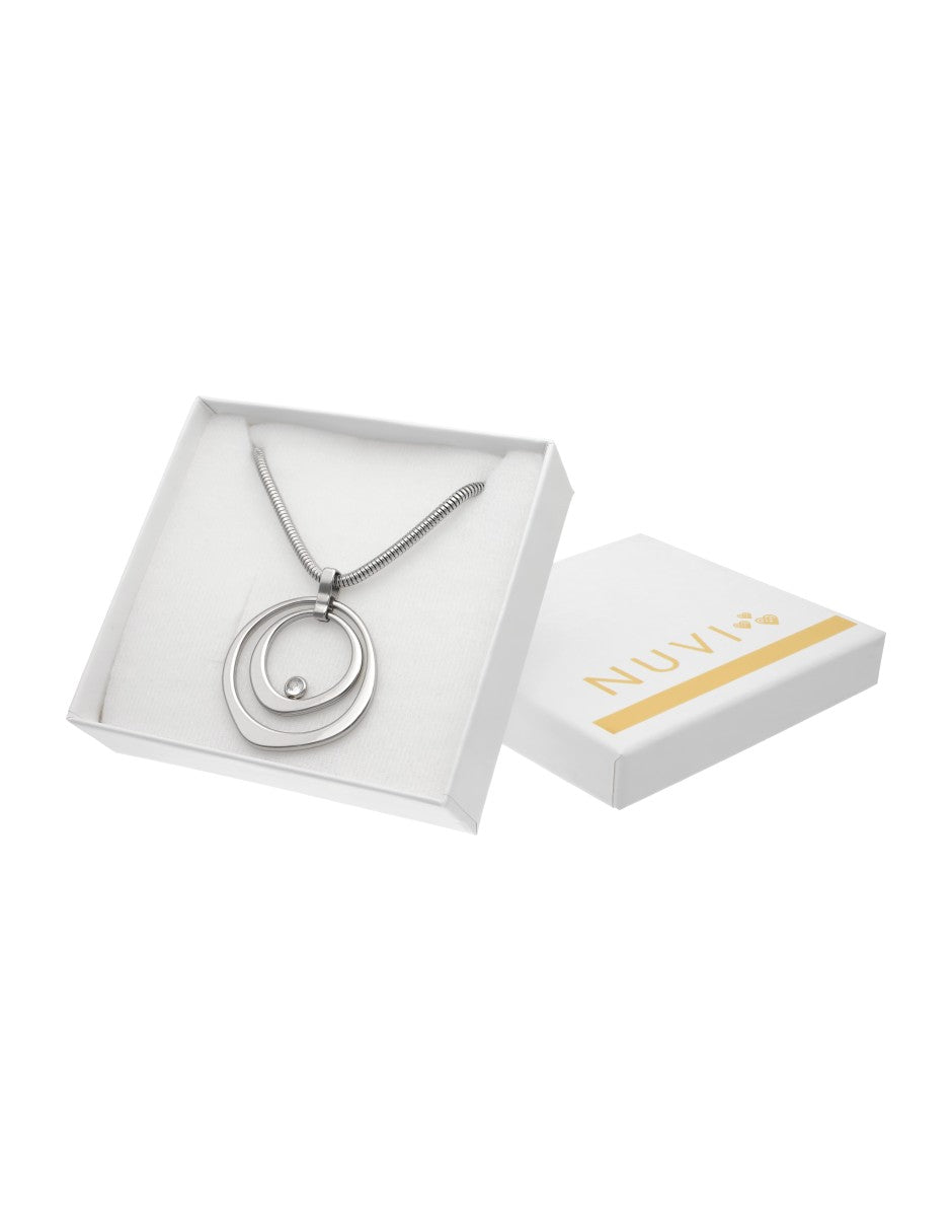 Collar Corto Acero Inoxidable Cadena Grande Circulo Abstracto Gigante Plateado es un accesorio NUVI® ideal para ti o regalo.
