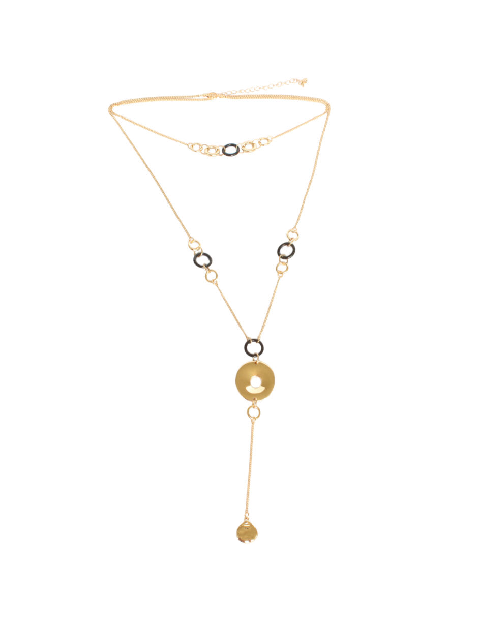 Collar Doble Cadena Largo Redondos Negro y Dorado
