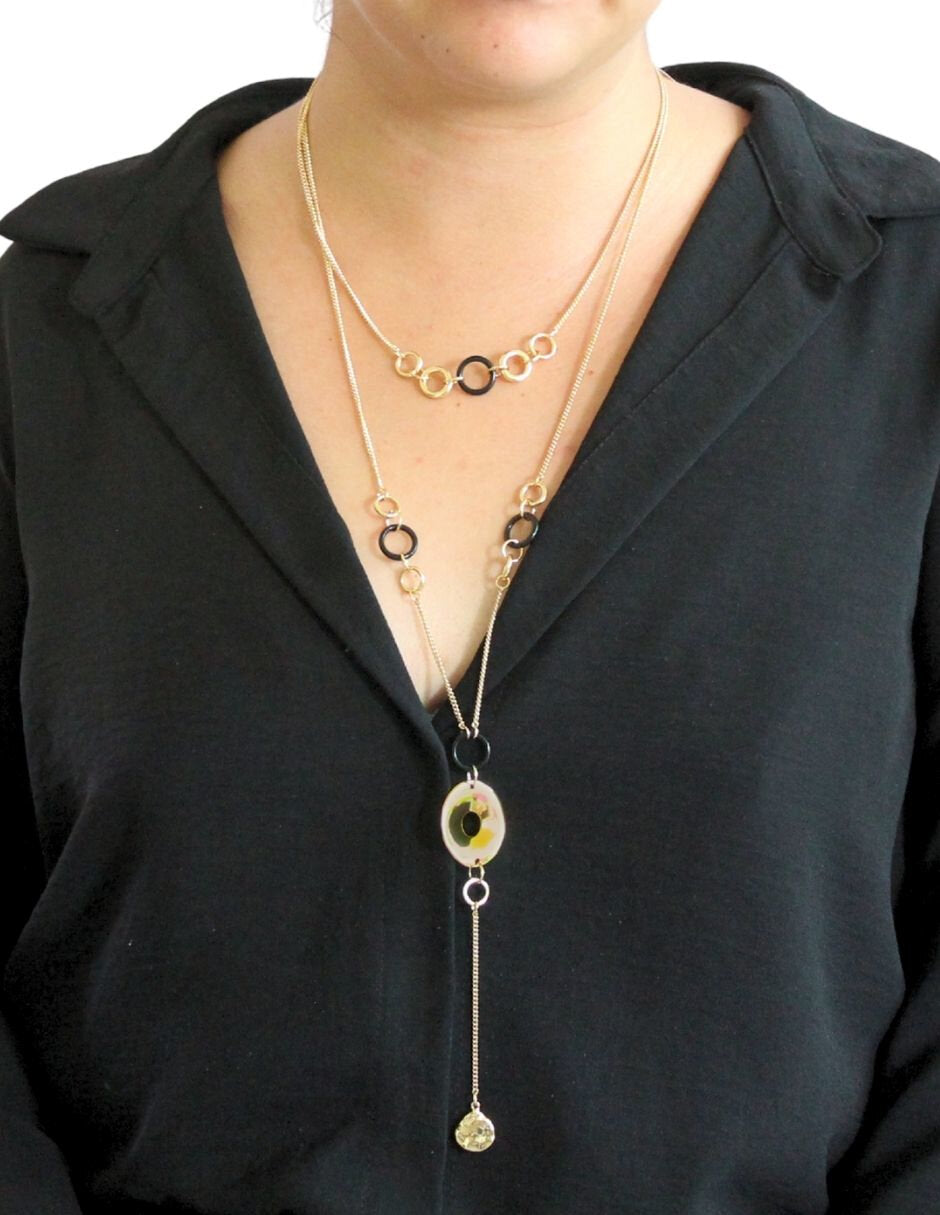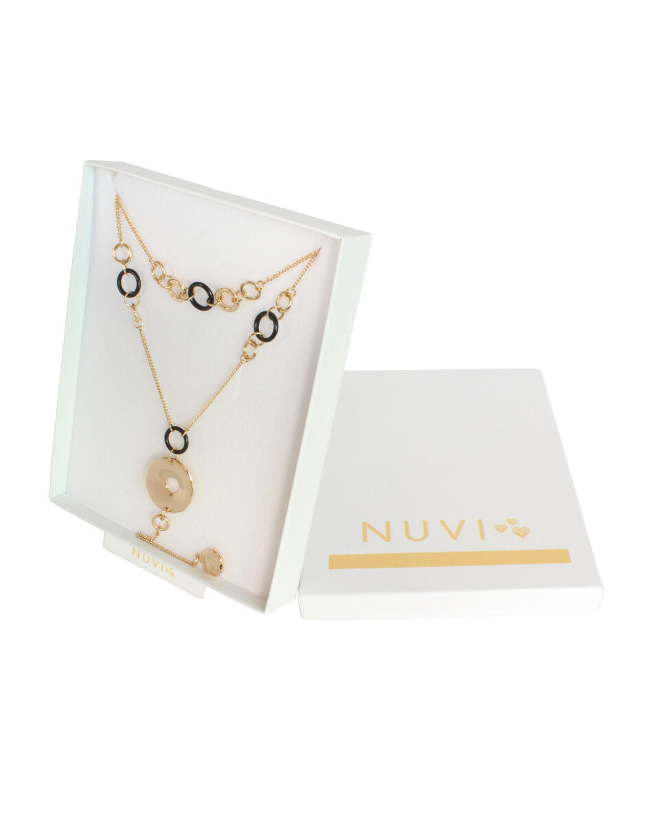 Collar Doble Cadena Largo Redondos Negro y Dorado es un accesorio NUVI® ideal para ti o regalo.